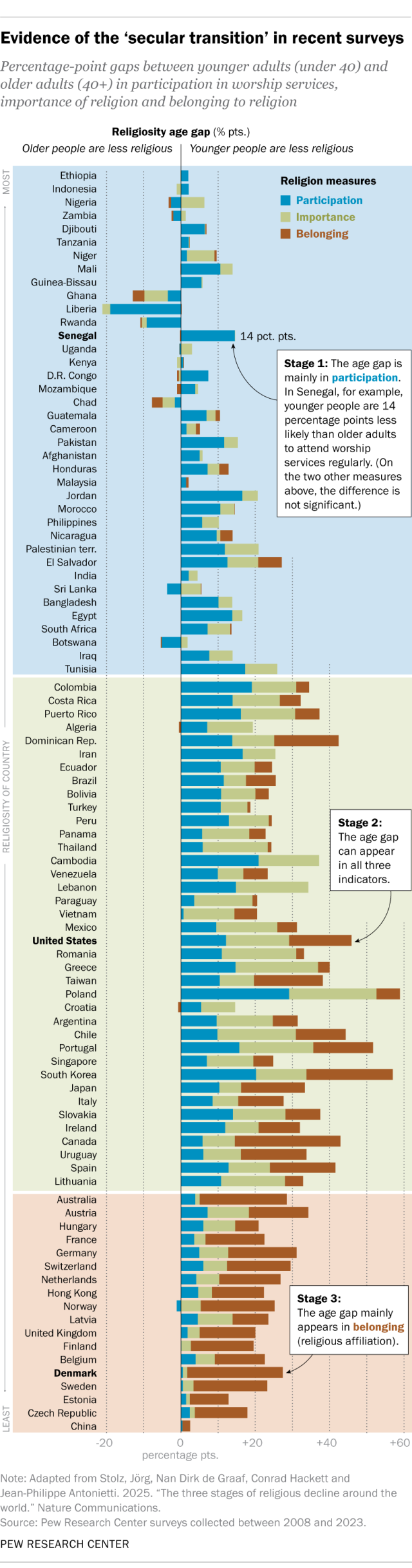 - Stolz, J., de Graaf, N.D., Hackett, C. et al. The three stages of religious decline around the world. Nat Commun 16, 7202 (2025). https://doi.org/10.1038/s41467-025-62452-z